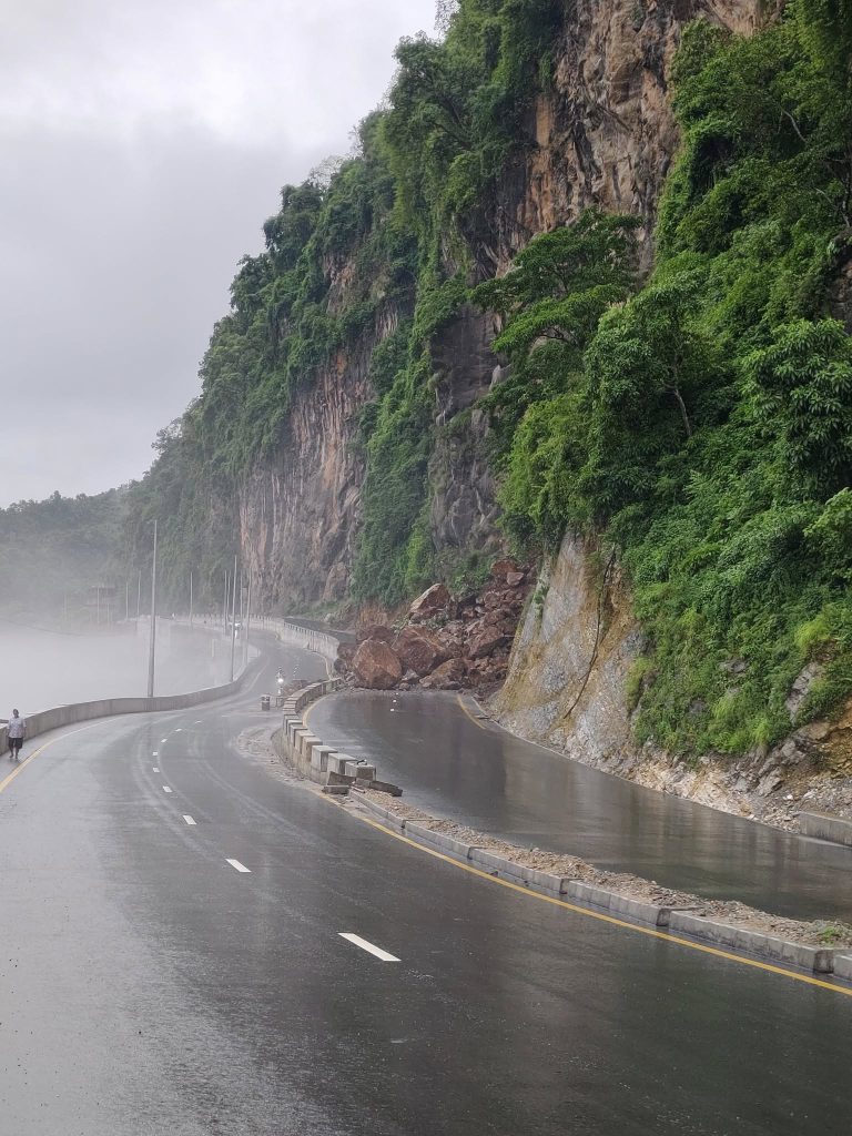 One lane of the highway was reopened to traffic at press time this morning. Vehicles are being allowed to move slowly under limited conditions, with security personnel guiding traffic on both sides. Full restoration of the road, however, could take many hours or even days depending on weather and sustained terrain stability.